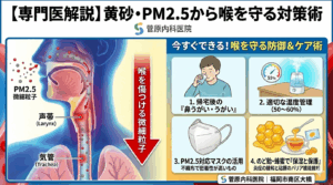 「風邪薬が効かない咳」の正体?黄砂・PM2.5から喉を守る専門医の対策術「春になると決まって咳が出る」「風邪薬を飲んでも、喉のイガイガや咳がなかなかスッキリ治らない……」今の時期、当院にもそんな悩みで受診され … 続きを読む 「風邪薬が効かない咳」の正体? 黄砂・PM2.5から喉を守る対策術